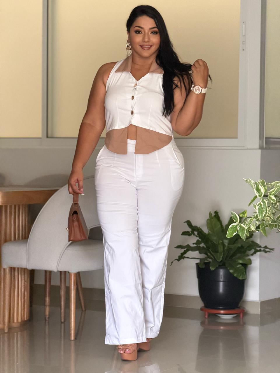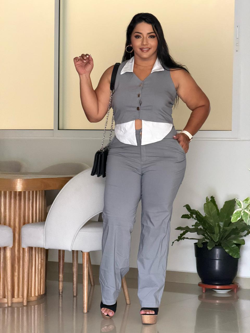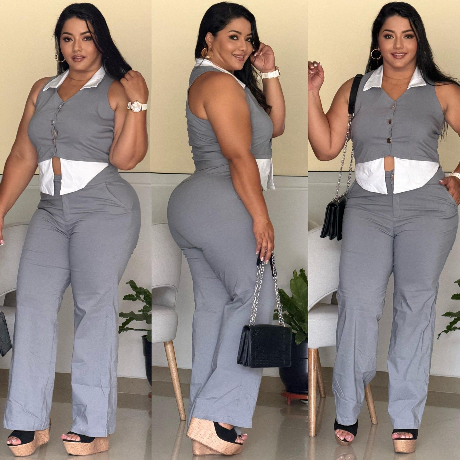 Conjunto de dos piezas para mujer en tallas plus, diseñado para realzar la figura con un ajuste cómodo y moderno.