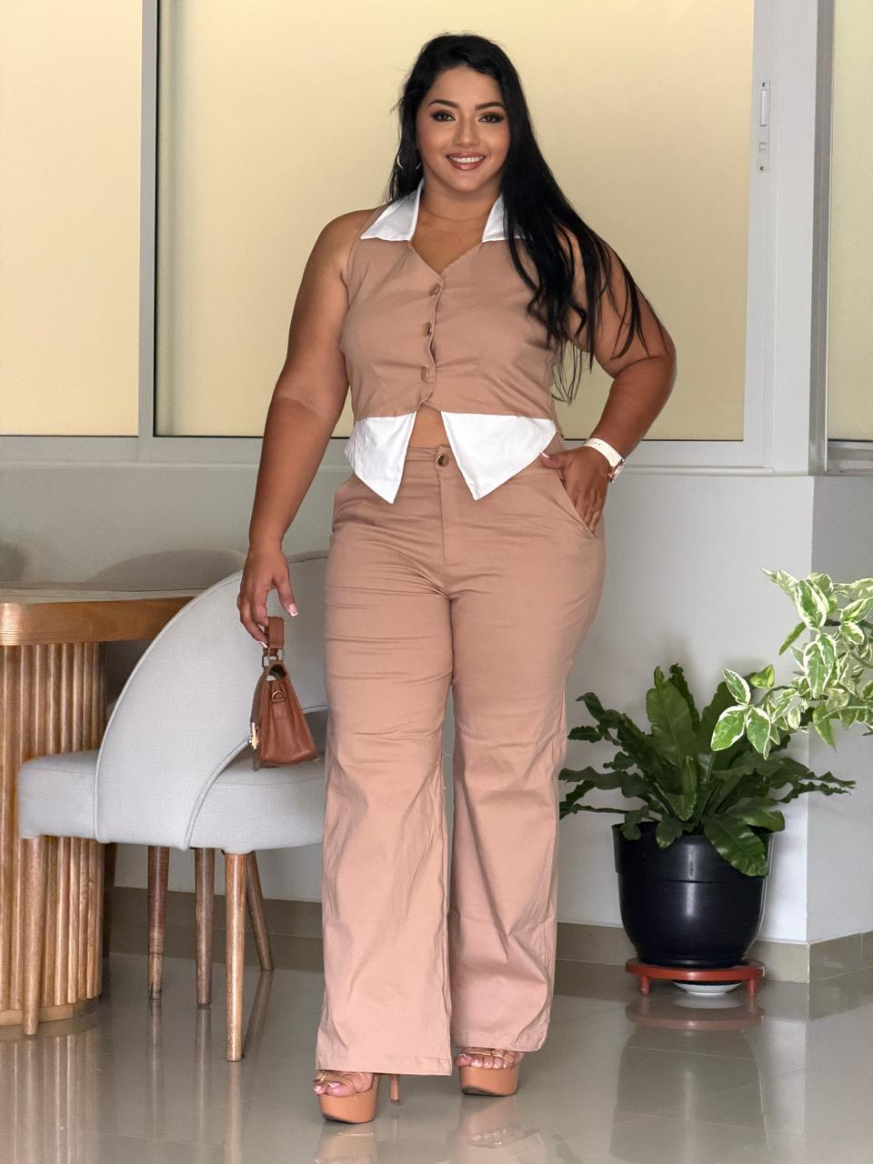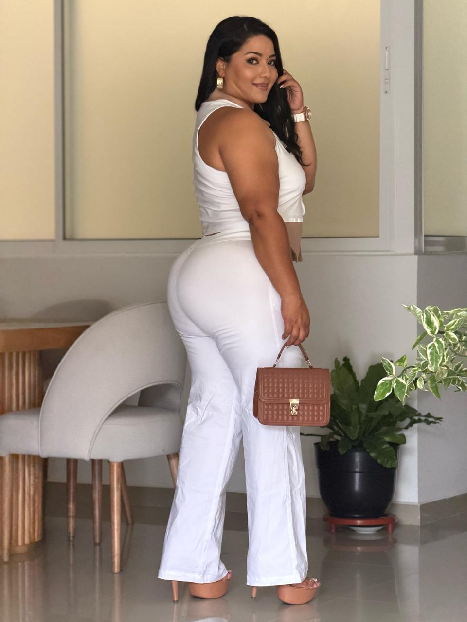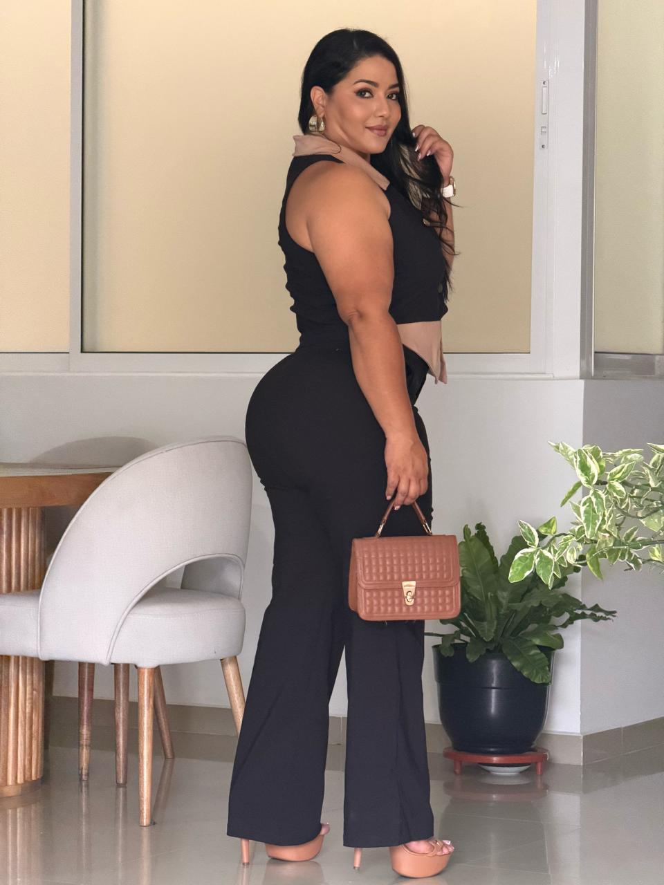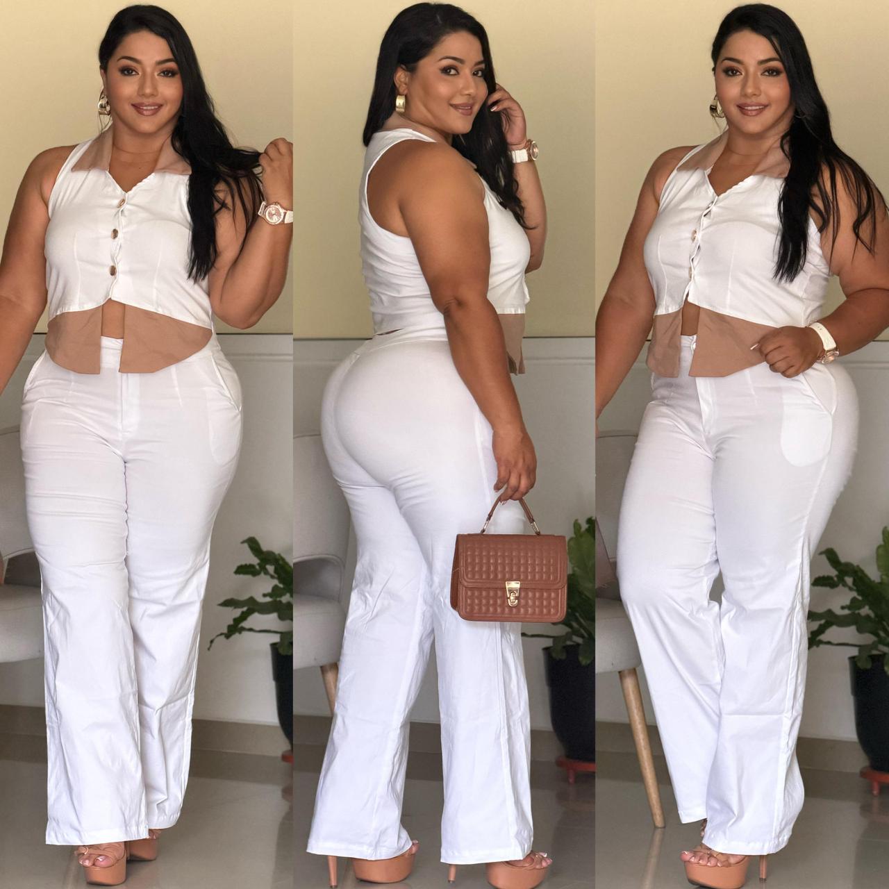 Conjunto de dos piezas para mujer en tallas plus, diseñado para realzar la figura con un ajuste cómodo y moderno.